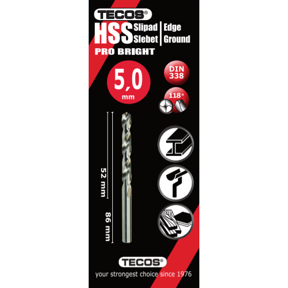 HSS borr Pro Bright - 5,0 × 86 mm - 2 st.